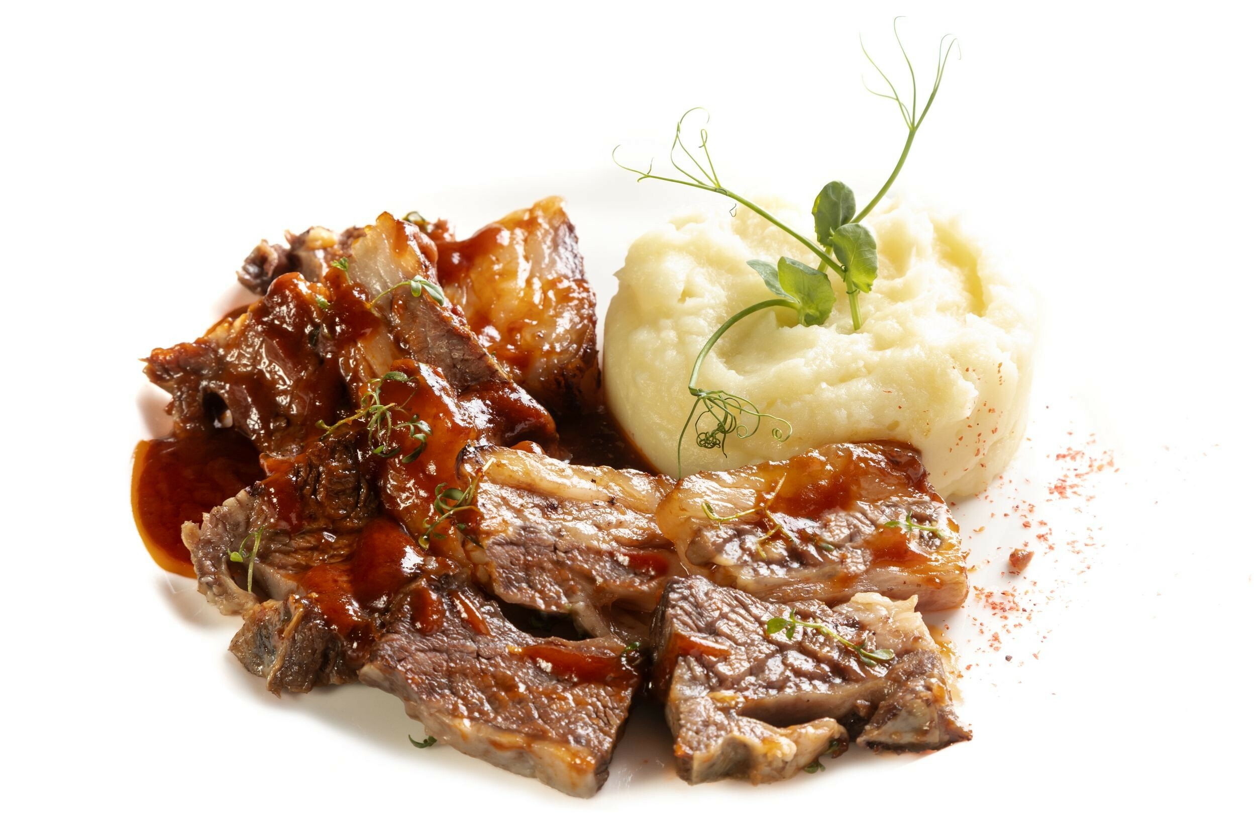 Свинина, говядина,курица, баранина, подается с соусом демиглас